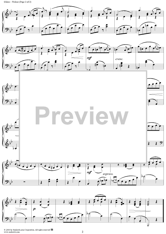 Digital Sheet Music for Walzer - No. 6 from "Twelve Children's Pieces" Op. 31 by Reinhold Glière scored for Piano Solo; id:267957