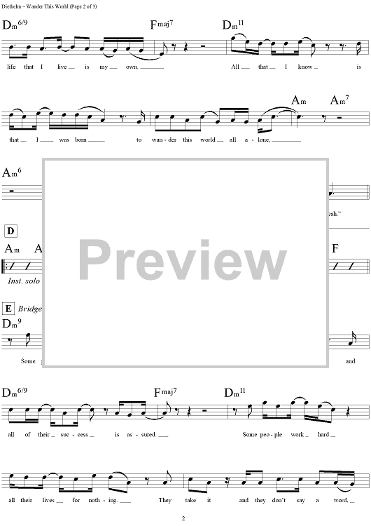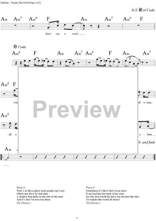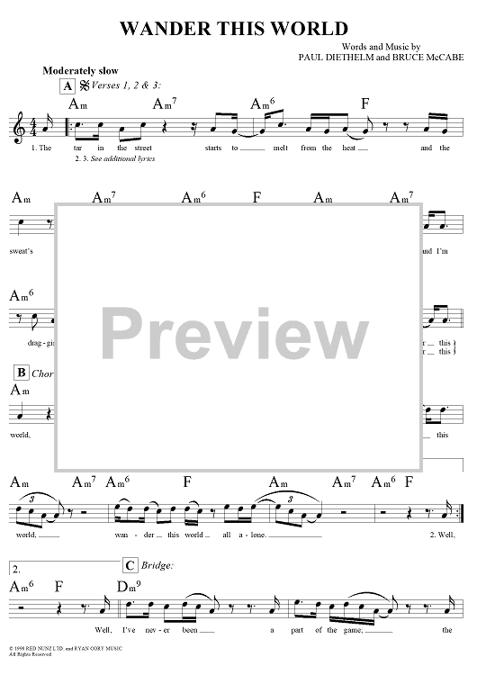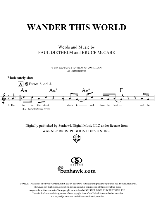 Digital Sheet Music for Wander This World by Paul Diethelm, Bruce McCabe scored for Lead Sheet; id:291797