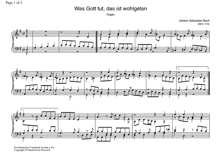 Digital Sheet Music for Was Gott tut, das ist wohlgetan BWV 1116 by Johann Sebastian Bach scored for Organ Solo; id:330693