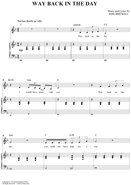 Digital Sheet Music for Way Back In The Day by Edie Brickell scored for Piano/Vocal/Chords; id:466713