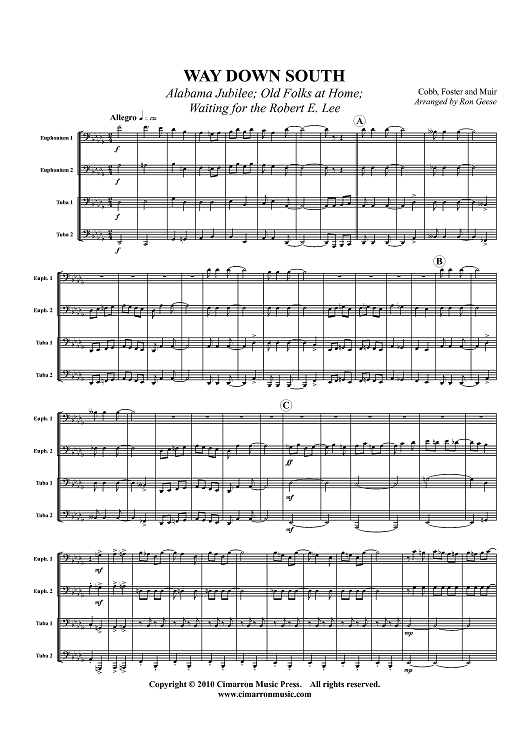 Digital Sheet Music for Way Down South - Score by Various, Ron Geese scored for Tuba Quartet; id:410161