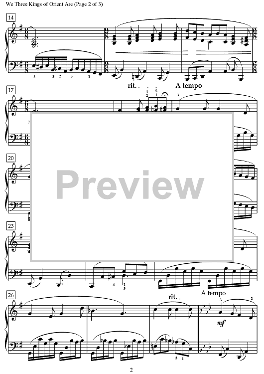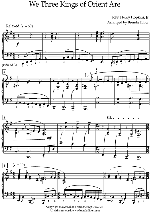 Digital Sheet Music for We Three Kings of Orient Are by John Henry Hopkins, Jr., Brenda Dillon scored for Piano; id:469273