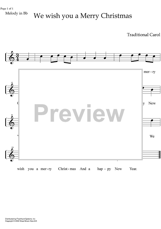 Digital Sheet Music for We Wish You a Merry Christmas - B-flat Instrument by Traditional scored for Piano/Vocal; id:337515