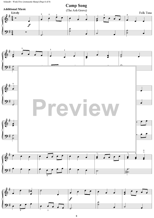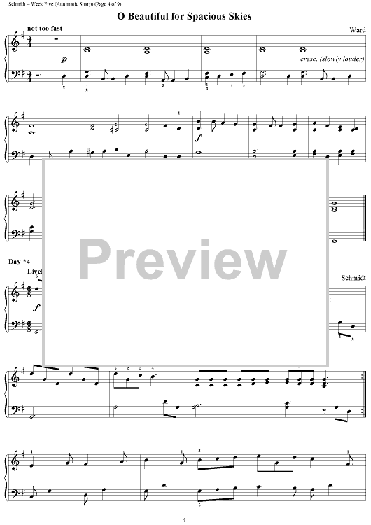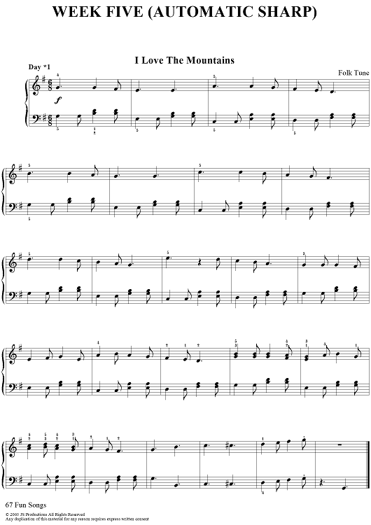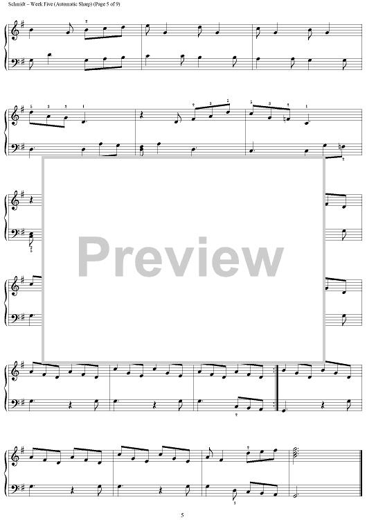 Digital Sheet Music for Week Five (Automatic Sharp) - 67 Fun Songs by Jon Schmidt scored for Piano; id:411435
