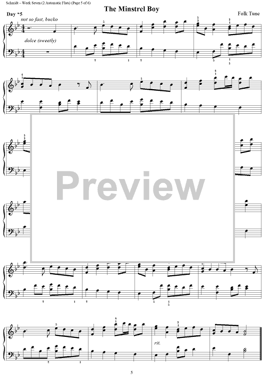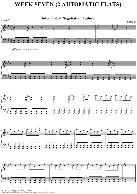 Digital Sheet Music for Week Seven (2 Automatic Flats) - 67 Fun Songs by Jon Schmidt scored for Piano; id:411437
