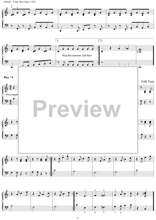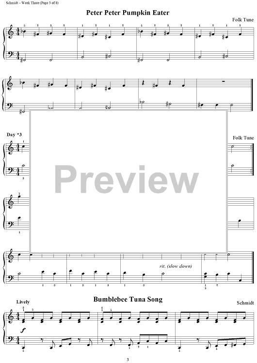 Digital Sheet Music for Week Three - 67 Fun Songs by Jon Schmidt scored for Piano; id:411433
