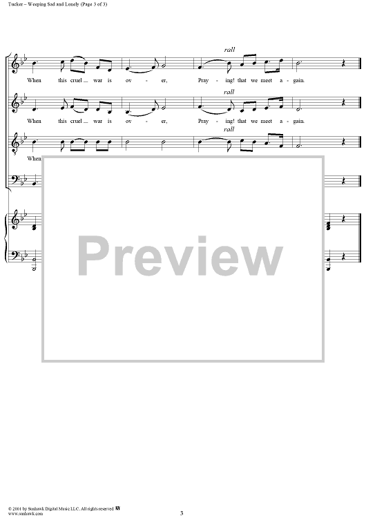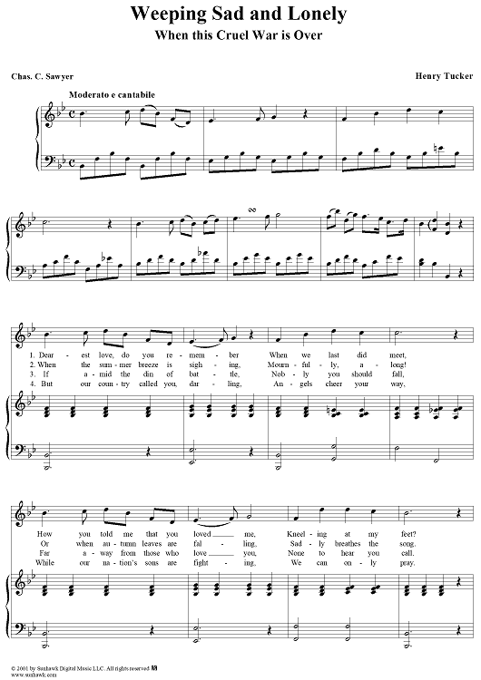 Digital Sheet Music for Weeping Sad and Lonely (When this Cruel War is Over) by Henry Tucker, Chas. C. Sawyer scored for Piano/Vocal; id:264268