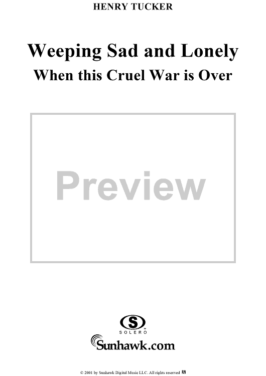 "Weeping Sad and Lonely (When this Cruel War is Over)" Sheet Music by Henry Tucker