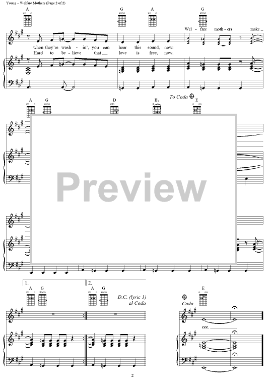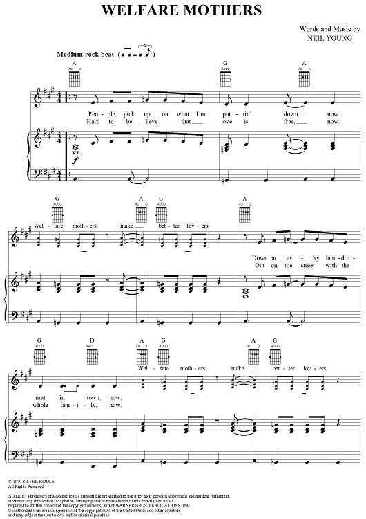 Digital Sheet Music for Welfare Mothers by Neil Young scored for Piano/Vocal/Chords; id:318507