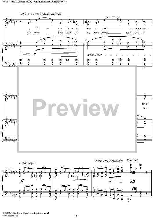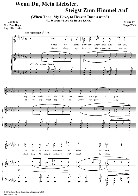 Digital Sheet Music for Wenn Du, Mein Liebster, Steigst Zum Himmel Auf by Hugo Wolf, Paul Heyse scored for Voice/Piano; id:263409