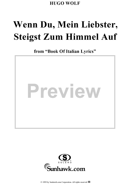 "Wenn Du, Mein Liebster, Steigst Zum Himmel Auf" Sheet Music by Hugo Wolf