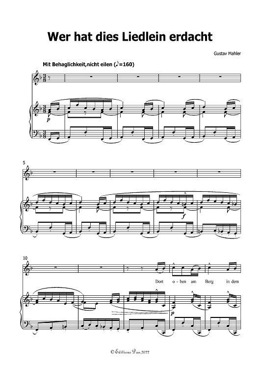 "Wer hat dies Liedlein erdacht" Sheet Music by Gustav Mahler