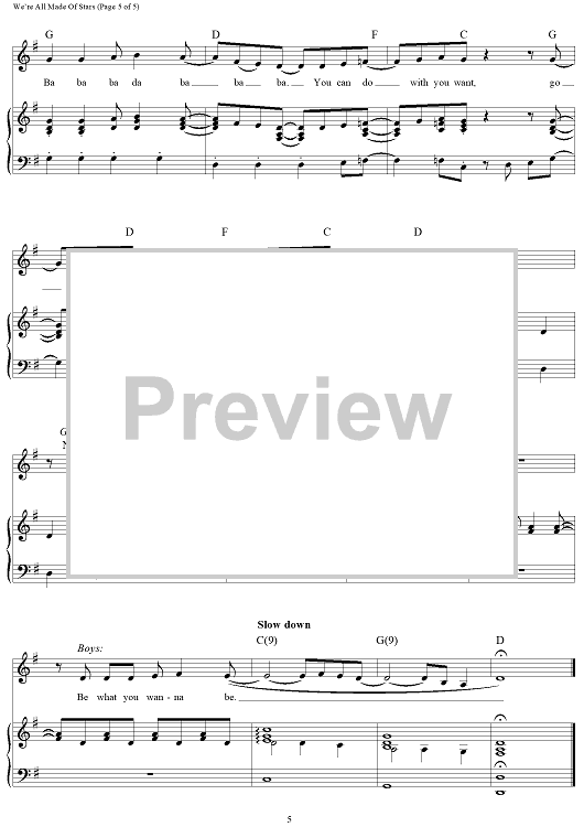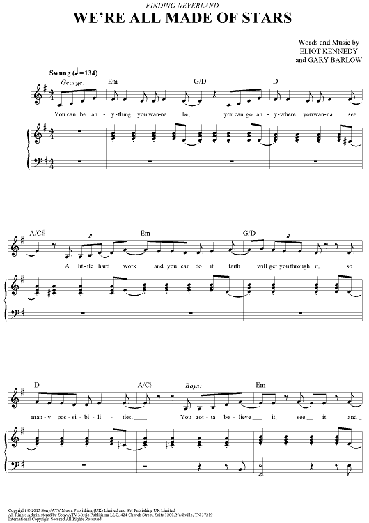 Digital Sheet Music for We're All Made of Stars - from Finding Neverland by Gary Barlow, Eliot Kennedy scored for Piano/Vocal/Chords; id:469002