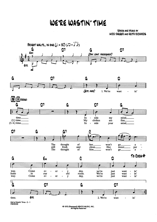 Digital Sheet Music for We're Waistin' Time by Keith Richards, The Rolling Stones, Mick Jagger scored for Lead Sheet; id:437607