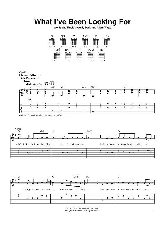 Digital Sheet Music for What I've Been Looking For by Adam Watts, Andy Dodd scored for Easy Guitar Tab; id:402256