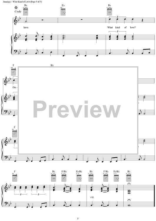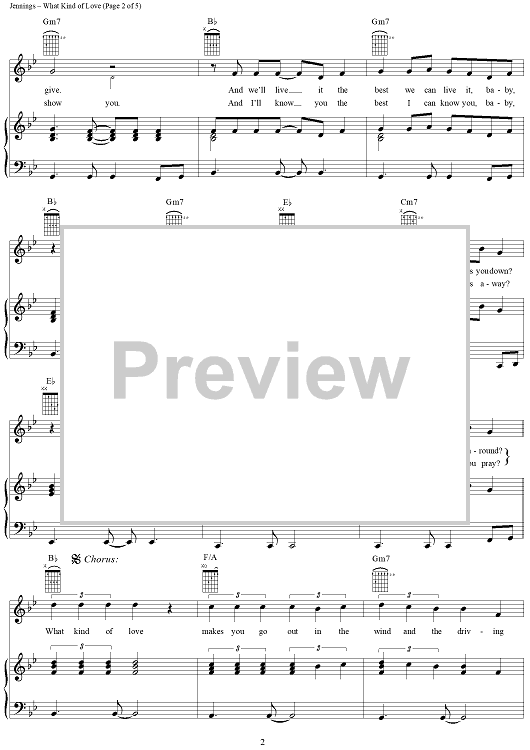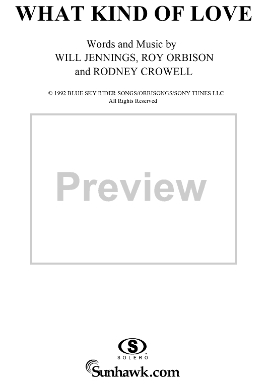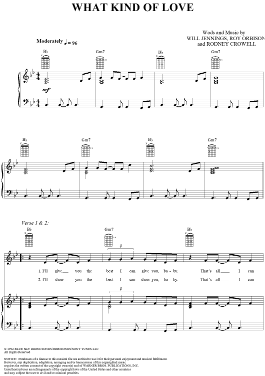 Digital Sheet Music for What Kind of Love by Will Jennings, Roy Orbison, Rodney Crowell scored for Piano/Vocal/Chords; id:266351