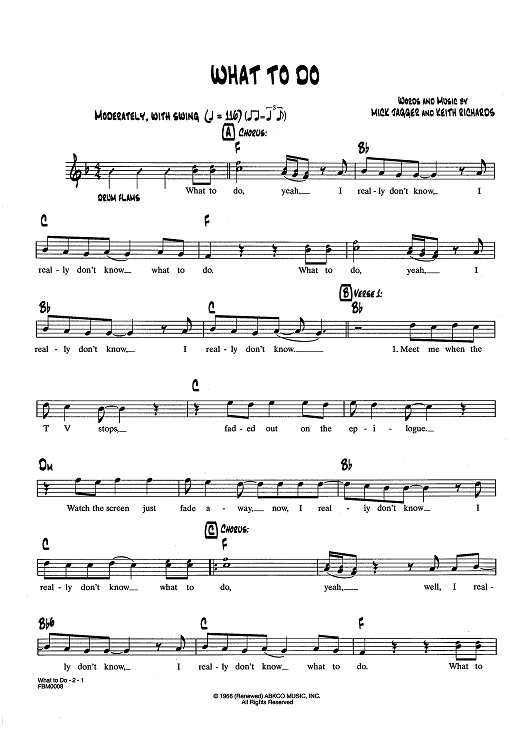 Digital Sheet Music for What To Do by Keith Richards, The Rolling Stones, Mick Jagger scored for Lead Sheet; id:437608