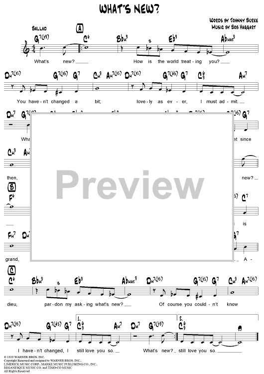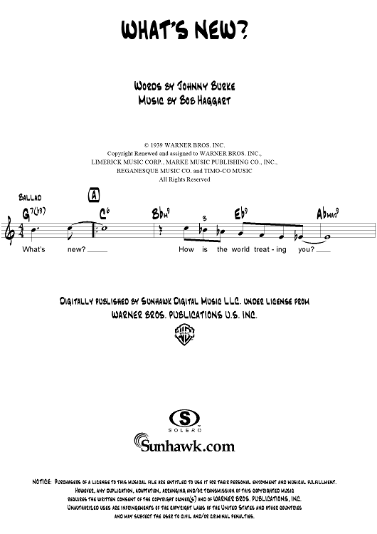 Digital Sheet Music for What's New? by Linda Ronstadt, Johnny Burke, Bob Haggart scored for Lead Sheet; id:307531