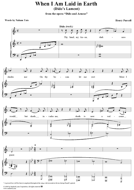 Digital Sheet Music for When I Am Laid In Earth by Nahum Tate, Henry Purcell scored for Voice/Piano; id:118391