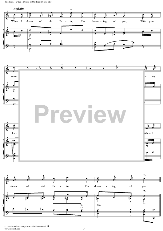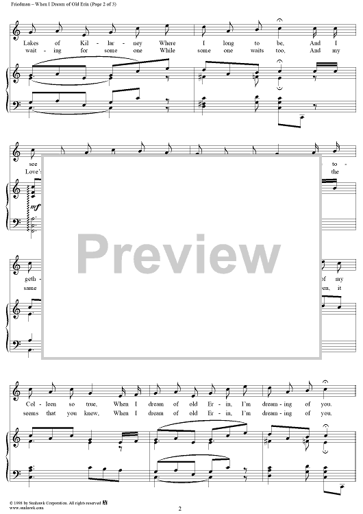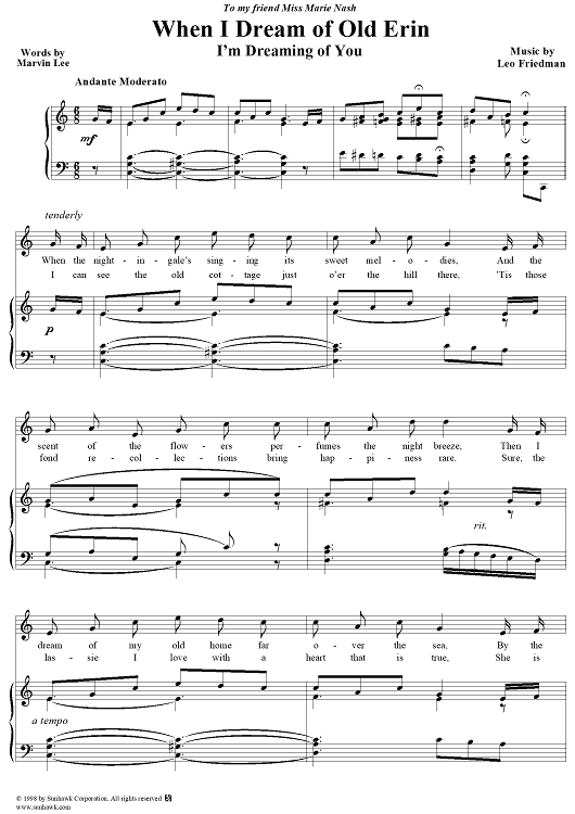 Digital Sheet Music for When I Dream Of Old Erin (I'm Dreaming of You) by Leo Friedman, Marvin Lee scored for Piano/Vocal; id:263192