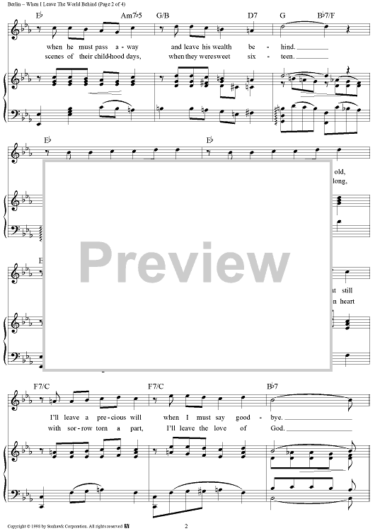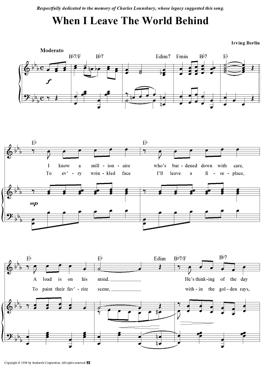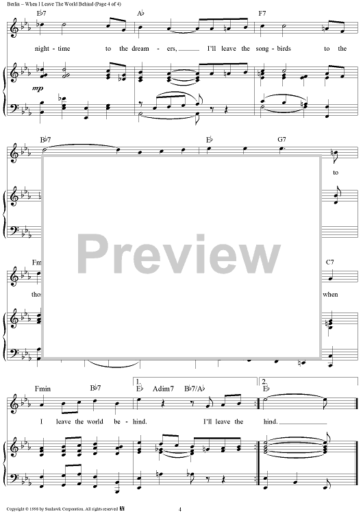 Digital Sheet Music for When I Leave the World Behind by Irving Berlin, Al Jolson scored for Piano/Vocal; id:95569