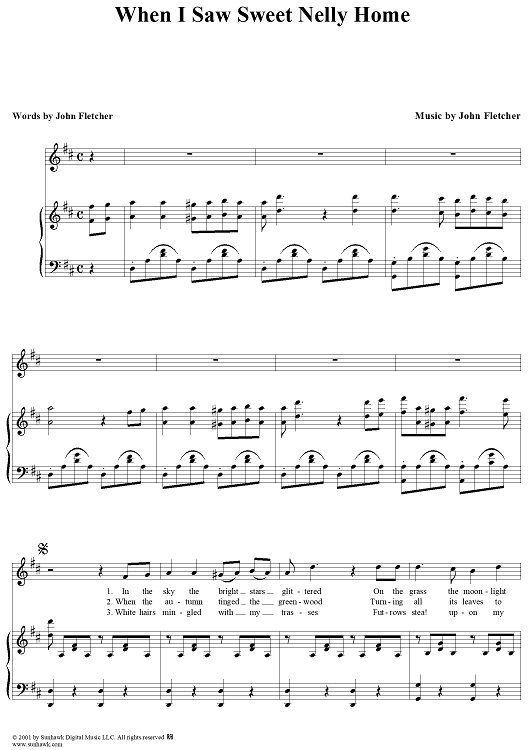 Digital Sheet Music for When I Saw Sweet Nelly Home by John Fletcher scored for Piano/Vocal; id:264135