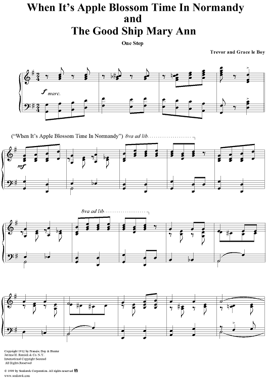 Digital Sheet Music for When It's Apple Blossom Time In Normandy / The Good Ship Mary Ann medley (One Step) by Trevor scored for Piano/Vocal; id:262136