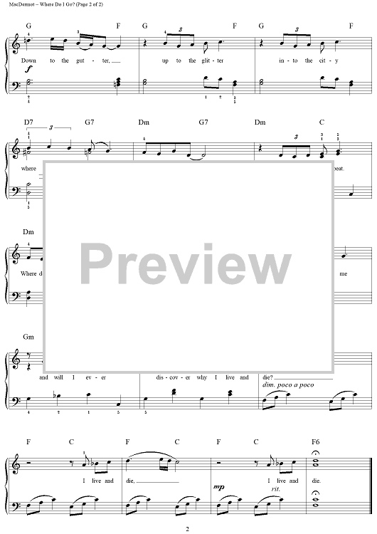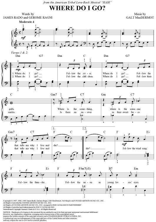 Digital Sheet Music for Where Do I Go by Galt MacDermot, James Rado, Gerome Ragni, John Lane scored for Easy Piano/Vocal; id:251661