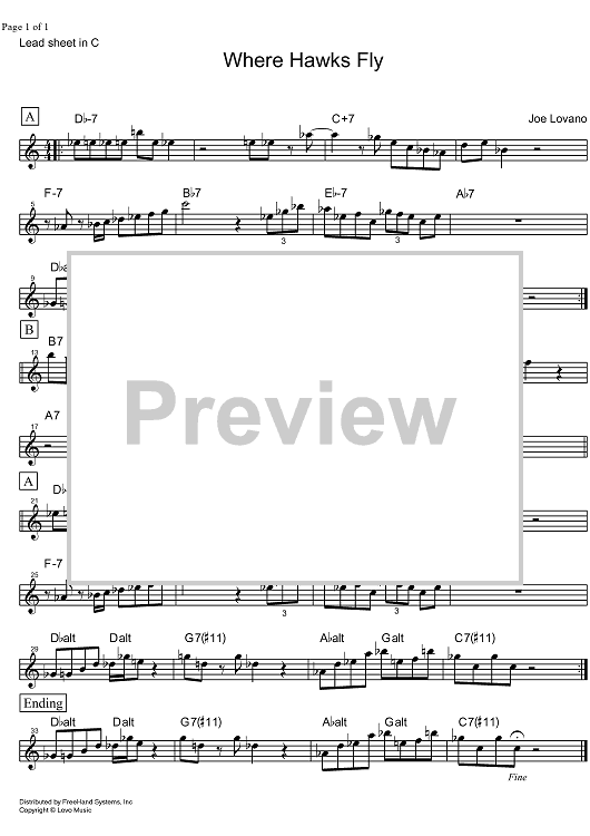 "Where Hanks Fly - C Instruments" Sheet Music by Joe Lovano