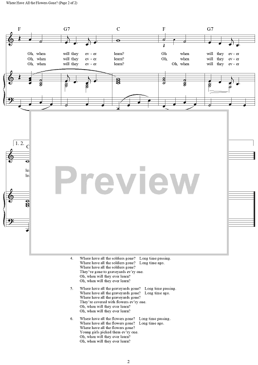 Digital Sheet Music for Where Have All The Flowers Gone? by Peter Seeger scored for Piano/Vocal/Chords; id:108560