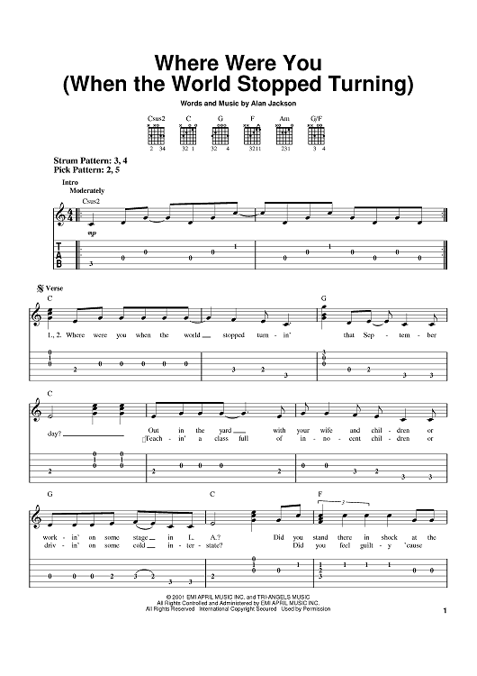 Digital Sheet Music for Where Were You (When The World Stopped Turning) by Al Jackson Jr scored for Easy Guitar Tab; id:370784