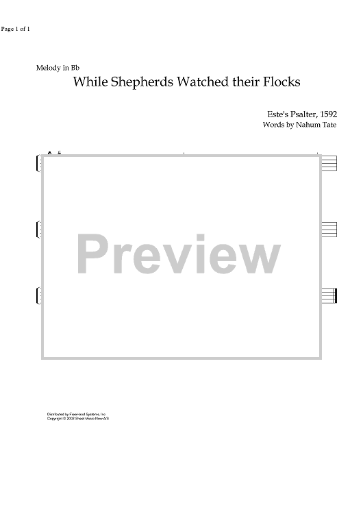 Digital Sheet Music for While Shepherds Watched their Flocks - B-flat Instrument by Este's Psalter scored for Piano/Vocal; id:337575
