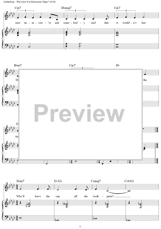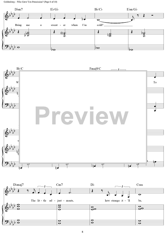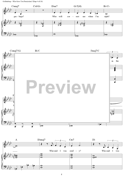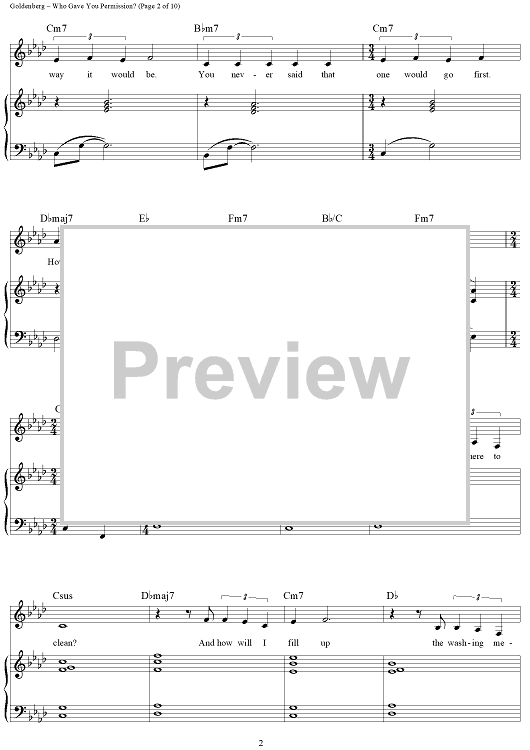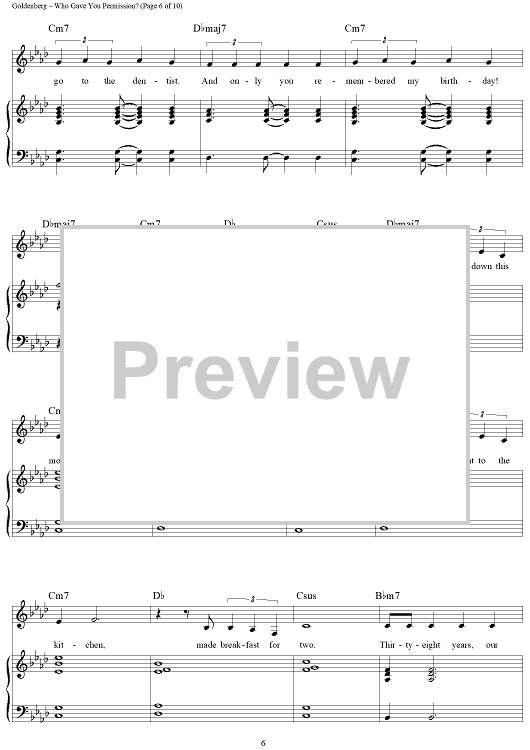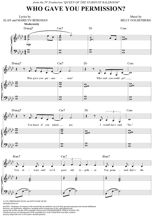 Digital Sheet Music for Who Gave You Permission? by Alan Bergman, Marilyn Bergman, Billy Goldenberg scored for Piano/Vocal/Chords; id:268242