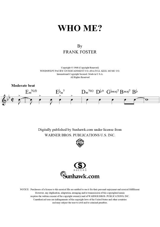 Digital Sheet Music for Who Me? by Count Basie, Frank Foster scored for Lead Sheet; id:269510