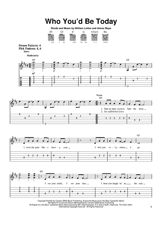 Digital Sheet Music for Who You'd Be Today by Kenny Chesney, Aimee Mayo, William C. Luther scored for Easy Guitar Tab; id:388995