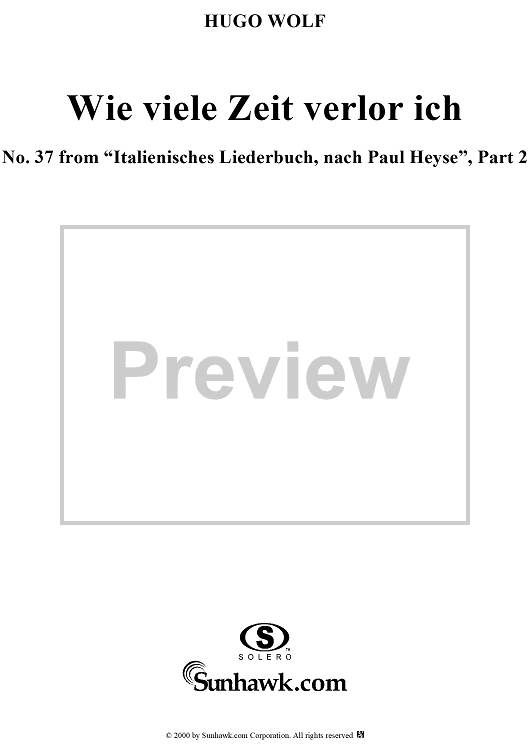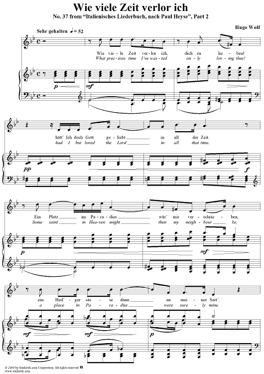 Digital Sheet Music for Wie viele Zeit verlor ich, No. 37 from "Italienisches Liederbuch, nach Paul Heyse", Part 2 by Hugo Wolf scored for Voice/Piano; id:267152