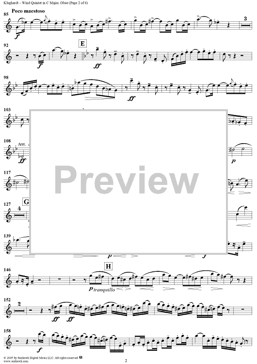 Digital Sheet Music for Wind Quintet in C Major, Op. 79 - Oboe by August Klughardt scored for Woodwind Quintet; id:311259