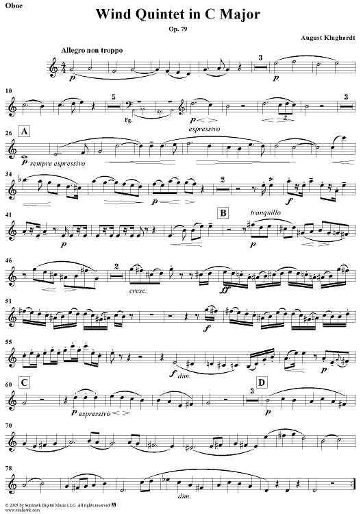 "Wind Quintet in C Major, Op. 79 - Oboe" Sheet Music by August Klughardt