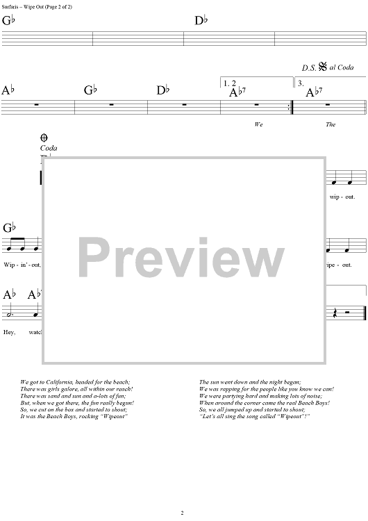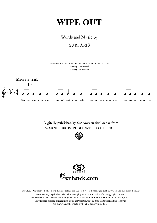 Digital Sheet Music for Wipe Out by Surfaris scored for Lead Sheet; id:116529