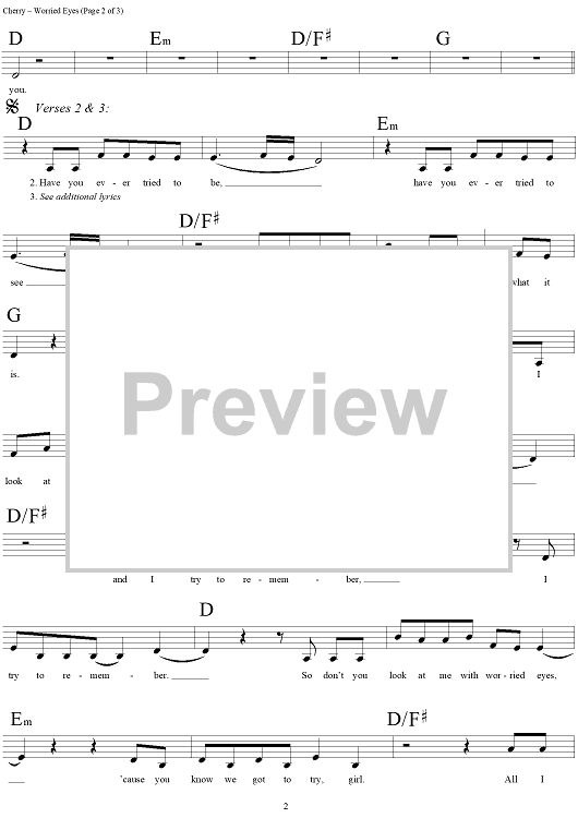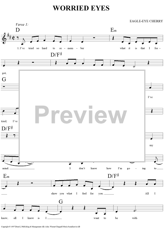 "Worried Eyes" Sheet Music by Eagle-Eye Cherry