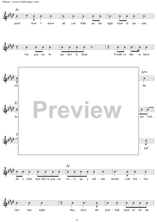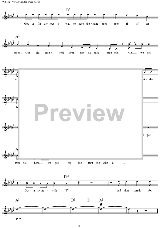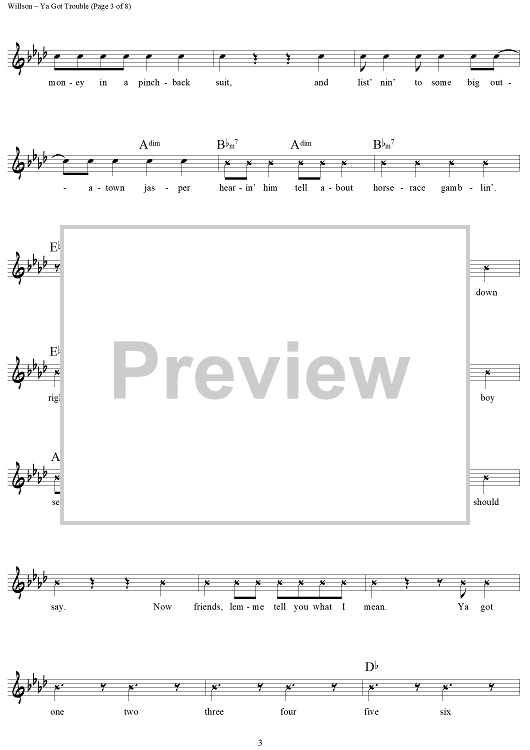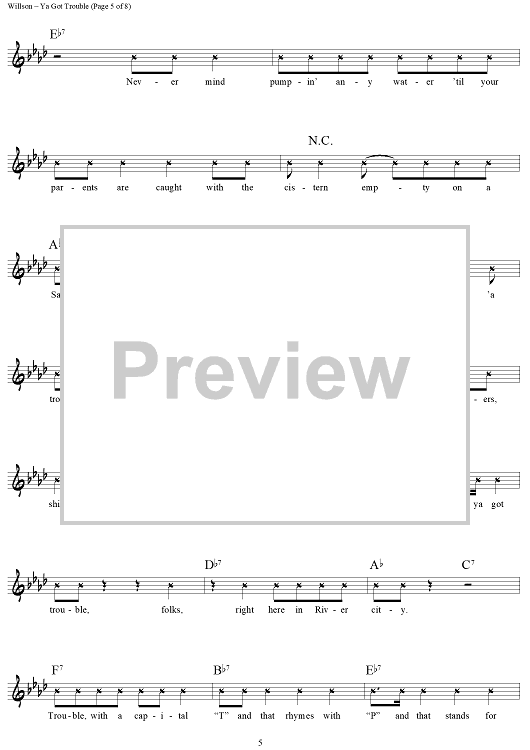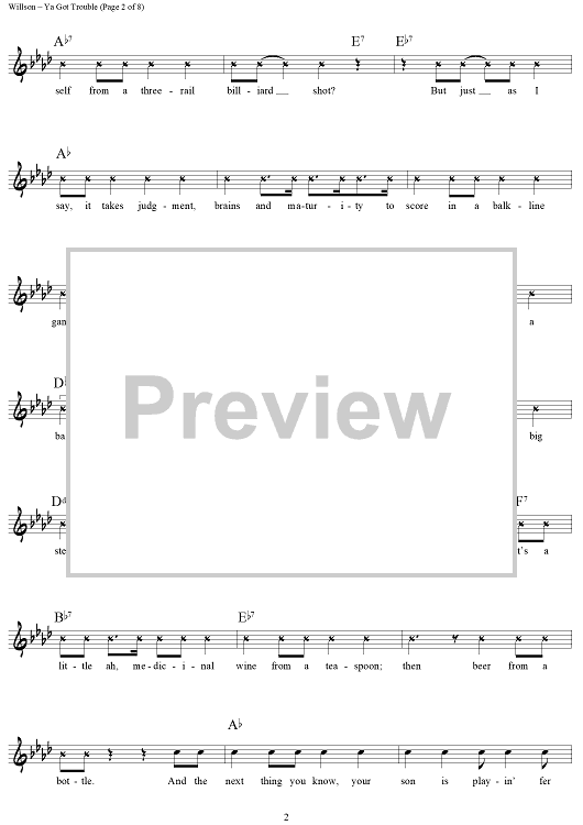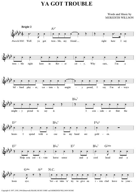 Digital Sheet Music for Ya Got Trouble by Meredith Willson scored for Lead Sheet; id:447316