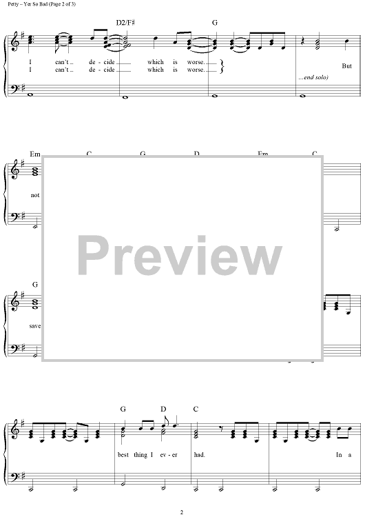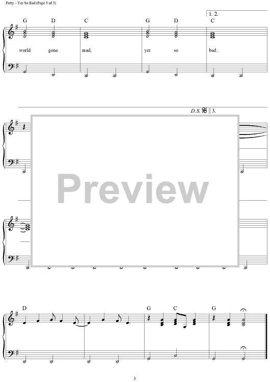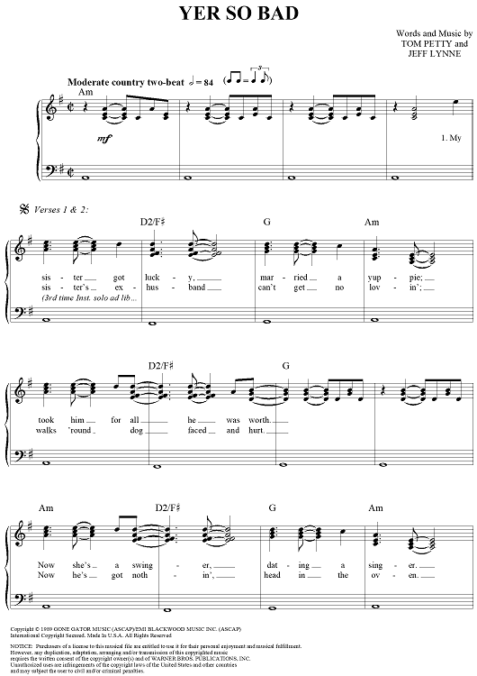 Digital Sheet Music for Yer So Bad by Tom Petty, Jeff Lynne scored for Easy Piano/Vocal; id:240751