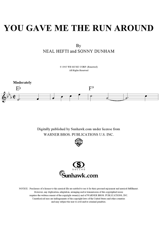 Digital Sheet Music for You Gave Me the Run Around by Neal Hefti, Sonny Dunham scored for Lead Sheet; id:266837
