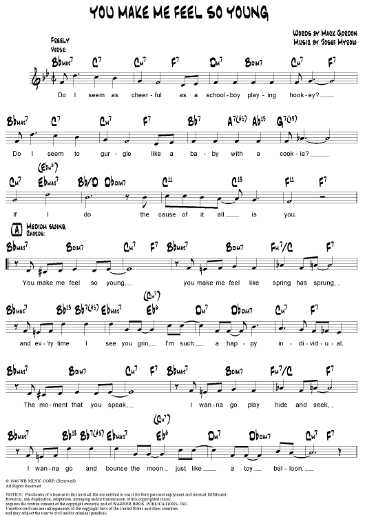 Digital Sheet Music for You Make Me Feel So Young by Mack Gordon, Josef Myrow scored for Lead Sheet; id:315170