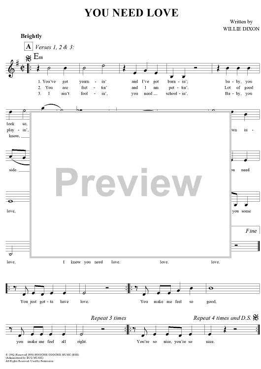 Digital Sheet Music for You Need Love by Willie Dixon scored for Lead Sheet; id:291840