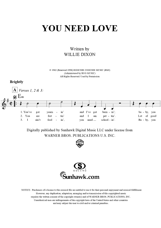 "You Need Love" Sheet Music by Willie Dixon
