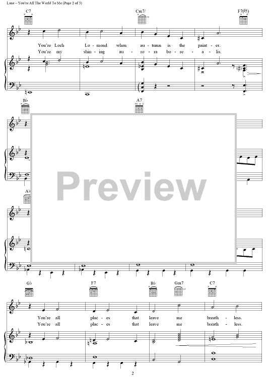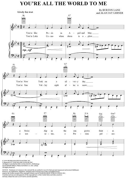 Digital Sheet Music for You're All the World to Me by Tony Bennett, Burton Lane, Alan Jay Lerner scored for Piano/Vocal/Chords; id:118056