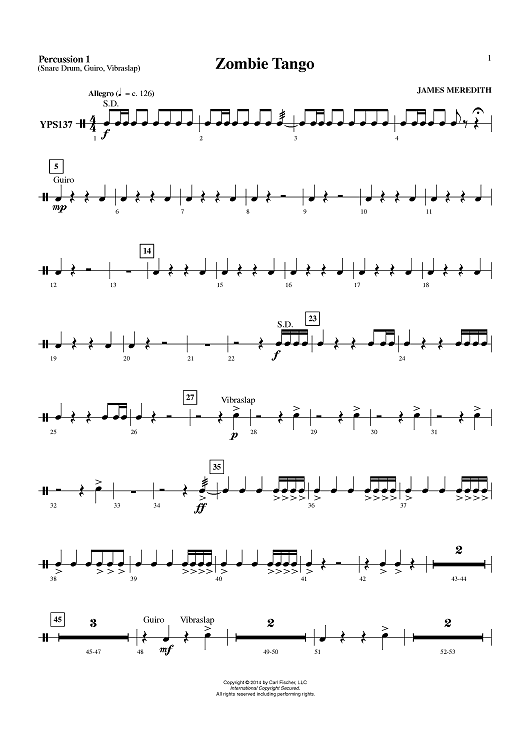"Zombie Tango - Percussion 1" Sheet Music by James Meredith