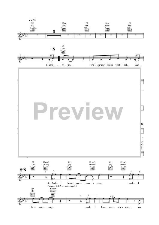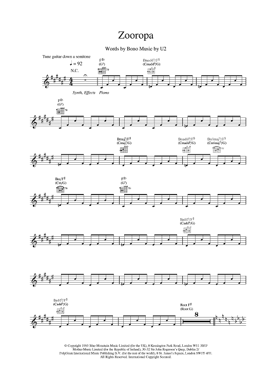 Digital Sheet Music for Zooropa by U2, Bono scored for Lead Sheet; id:376977