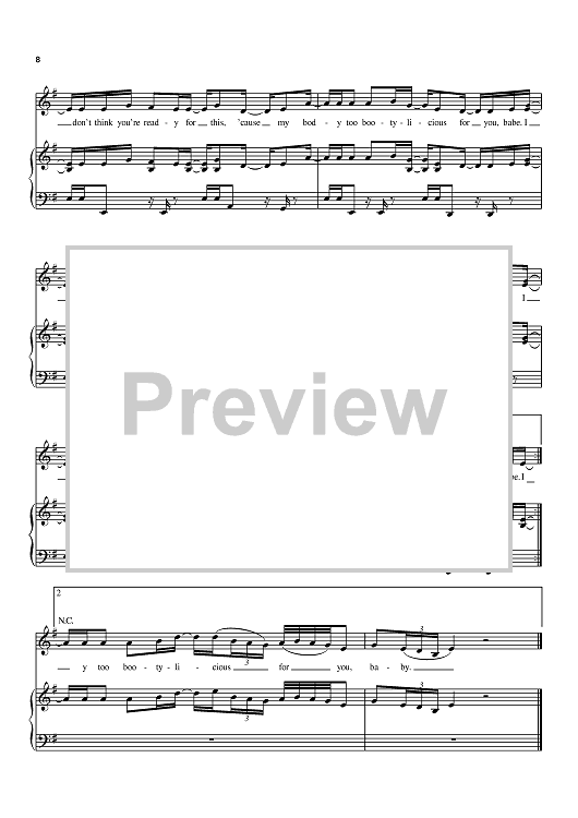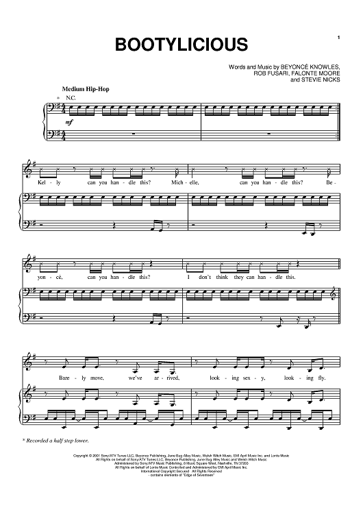 Digital Sheet Music for Bootylicious by Destiny's Child, Beyonce, Rob Fusari, Falonte Moore scored for Piano/Vocal/Chords; id:368568
